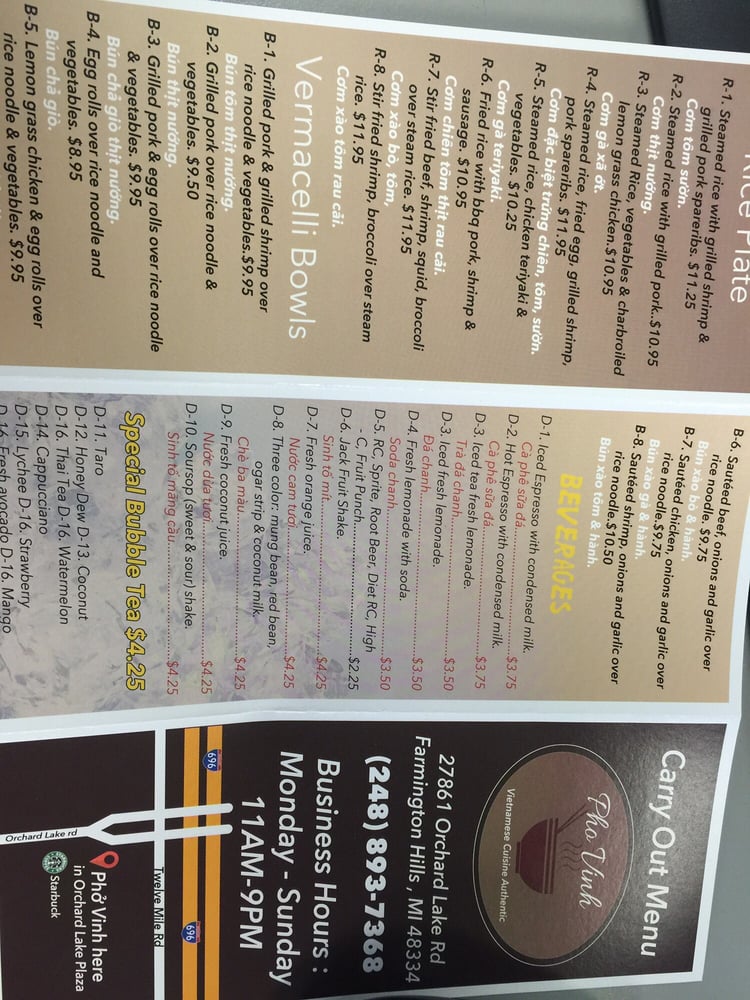 Discover the vibrant flavors of Vietnam at Pho Vinh, located in Farmington Hills, MI. This casual eatery offers a delightful menu that caters to both meat lovers and vegetarians alike. Start with their beloved salad rolls, served with a creamy peanut sauce, or indulge in crispy egg rolls for an authentic touch.